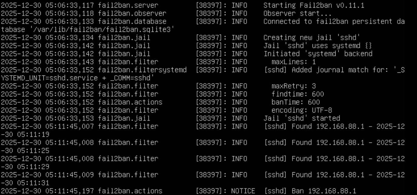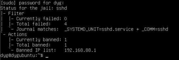 1 | sudo fail2ban-client set sshd unbanip 192.168.88.1 |