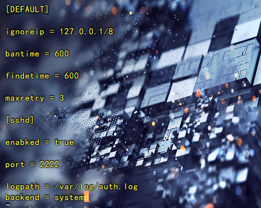 1 | sudo vim /etc/fail2ban/jail.local |